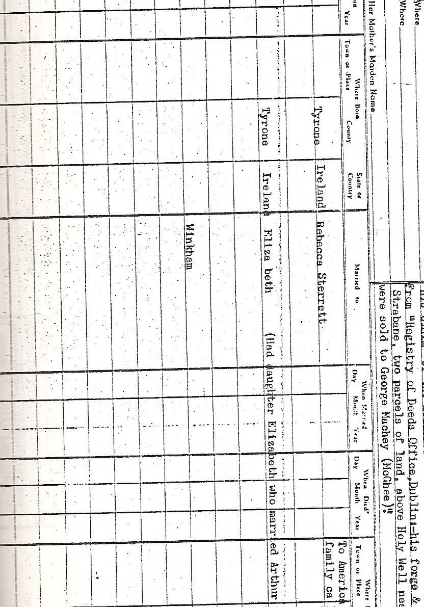 [9] From Registry of Deeds Office, Dublins - his forge & dwelling in Strabane, two parcels of land above Holy Well near Kirriduffe were sold to George Machey (McGhee).