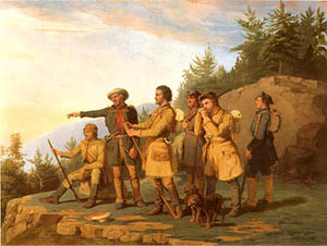The first inhabitants of West Virginia who came before the settlers from the new world are of course Native Americans. During the period of Native American occupation, West Virginia was a favorite hunting ground for many tribes. Over these extensive wilds, herds of bison, elks and deer roamed at will, all the way from the Alleghenies to the Ohio River, and bear and much other game abounded in the region. The Native Americans built their Wigwam along the courses of streams, and then chased the game through the dense forests, or wound his way along the war-path against the foe of his own race who had dared to trespass upon his hunting ground. Far to the northward and to the southward stretched a vast mountain system, which the Native Americans called "Ap-pal-ach-ia".. meaning the "endless mountains". They clambered over the mountains long covered with snow and they named them the Alleghany, signifying "the place of the foot print" or "the impression of the feet".