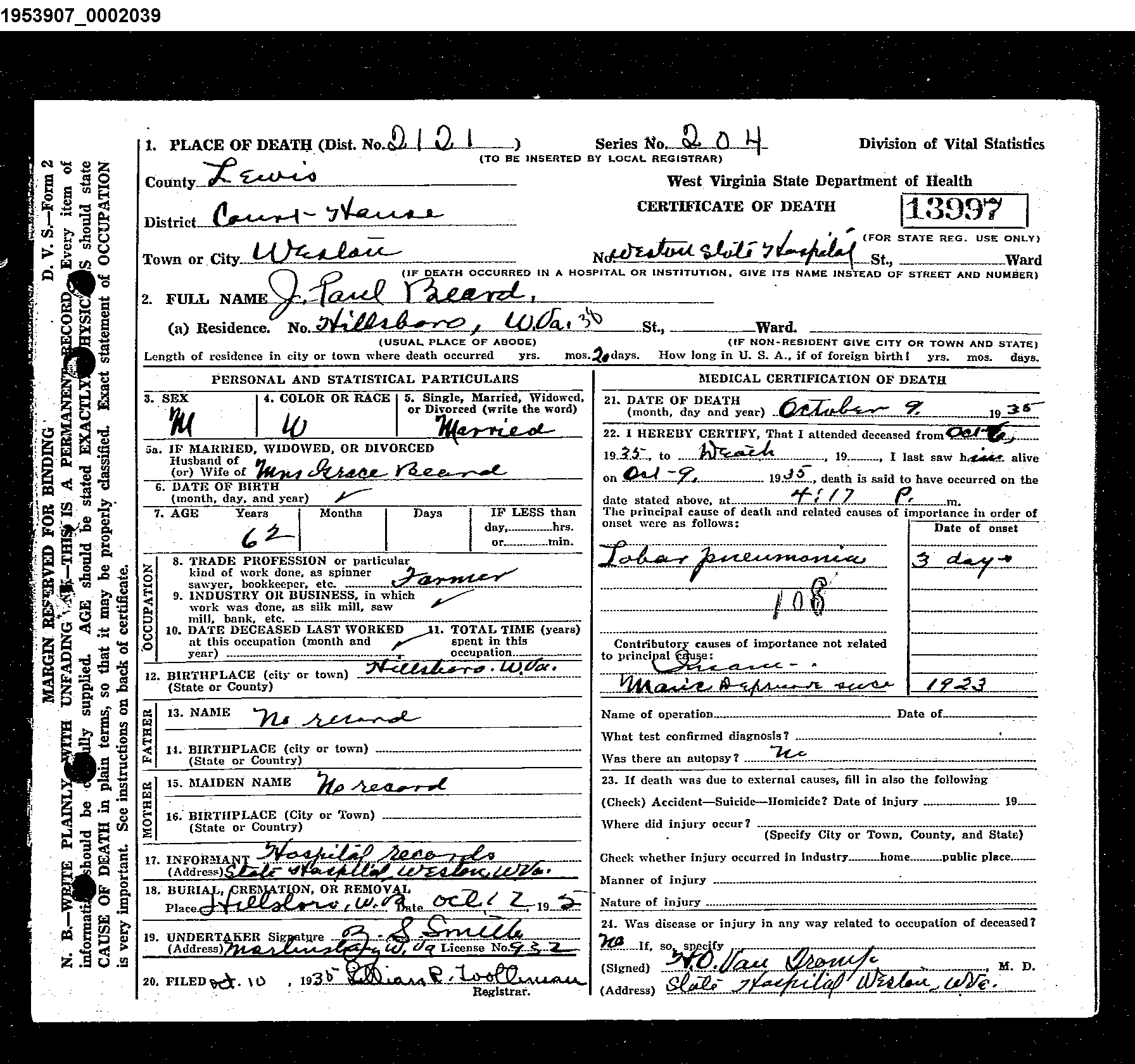 Josiah Paul (J. Paul) Beard passed away on October 9, 1935 at the age of 62.