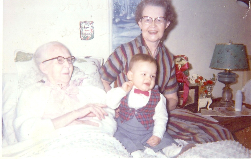 Our next step on the family tree is Josiah Paul Beard, married to Nancy Grace Kinnison (in 1901). We have actual photographs of Nancy Grace Kinnison in her older age (leftmost with her daughter Lucille Agnes Beard Price, and Stewart Paul Atkins (baby). Josiah Paul was known as the "Colonel" Beard.