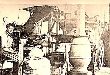 ![]() A young Cal Price sitting at the Times Linotype machine. On the right is the old pot-bellied stove that heated the office in the winter