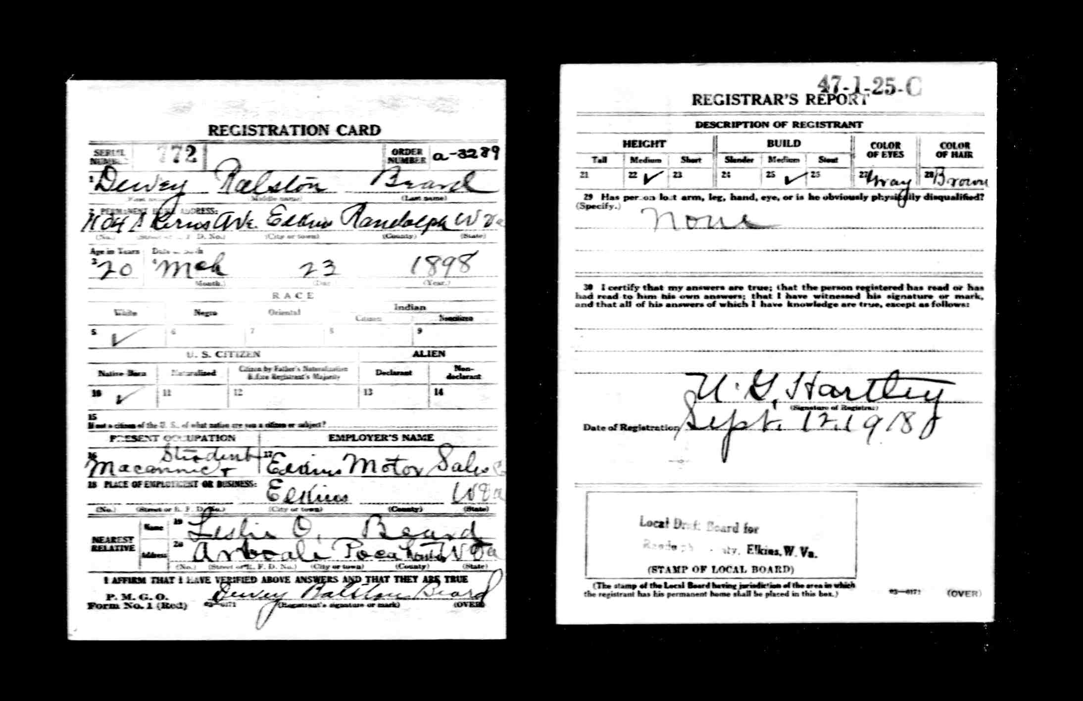 Dewey Ralston Beard was an accountant, and a member of the Presbyterian Lodge, and the Moose Lodge. He was a private in World War I. |