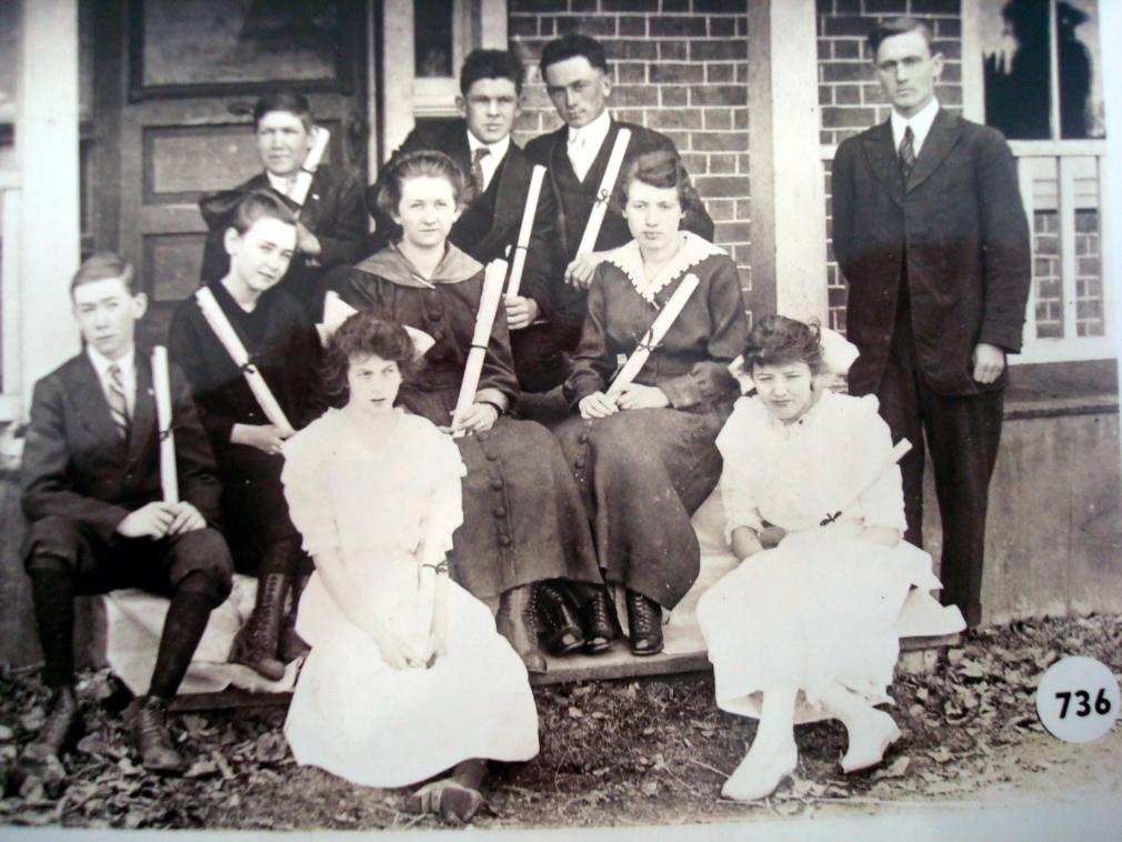 ![]() GreenBank School - Teacher C. E. Flynn Left to right--- Front Row - Kermit Arbogast, Lila Orndorff, Mary Orndorff (Marie Leist) Second Row - Lula Moore, Ethel Echols, Ruth Sutton Third Row - Henry Cooper, Watson Echols, Dewey Beard -- Pocahontas Historical Society - By EB 64 About 1916. |