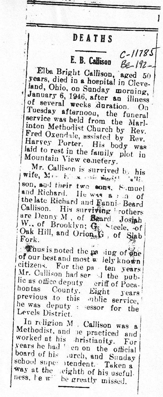 Obituary : Elba Bright Callison, aged 50 years, died in a