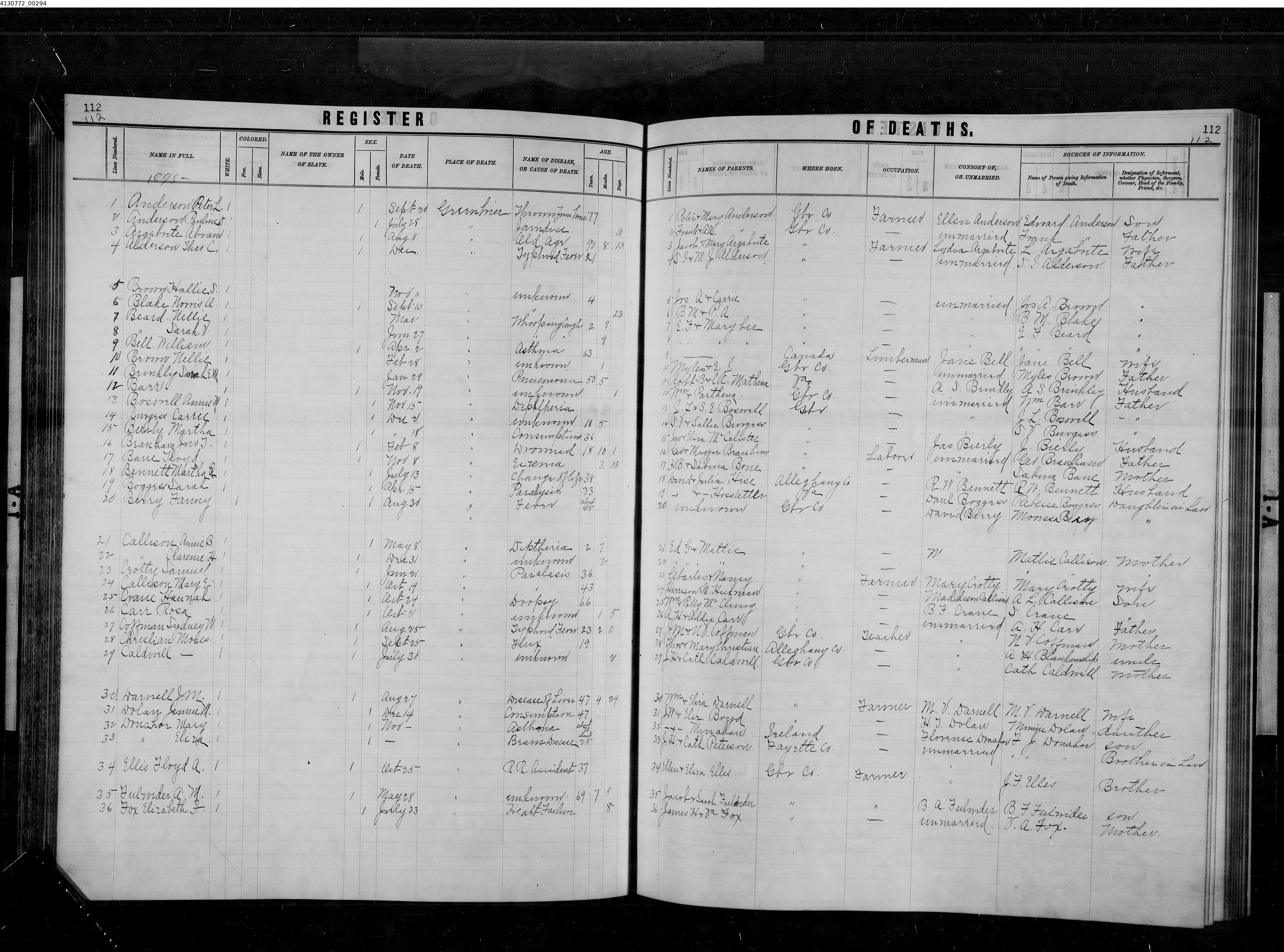 http://www.wvculture.org/vrr/va_view.aspx?Id=2893820&Type=Death Nellie F Beard d Mar 1895, Greenbrier County, WV, Age 2y 9m, Born Greenbrier County, WV, S, Mother Mary Lee, Father E. F. Whooping Cough. |