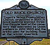 W79°58'27.4". Sign reads: Old Brick Church - Tygart's Valley Presbyterian