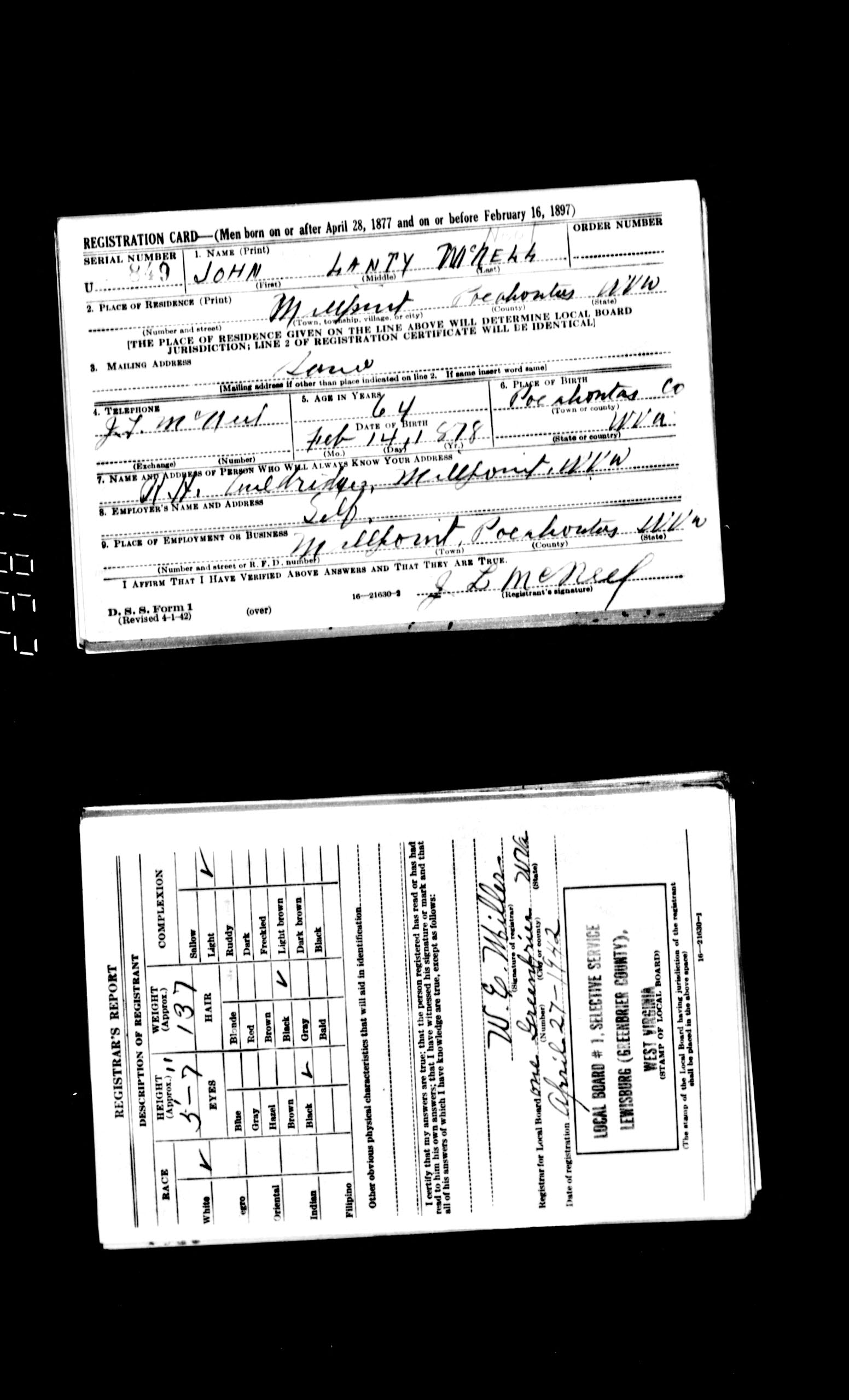| World War II Draft Registration - John Lanty McNeel |