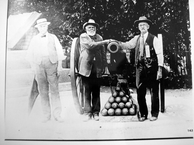 ![]() J. W. Price and two unidentified men at Gettysburg. |