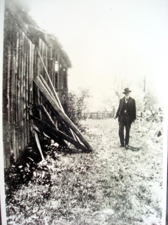 J. Woods Price - Taken 1912 - Standing in front of house originally built by Maj. William T. Poage about 1810 - owned by James A. Price. |