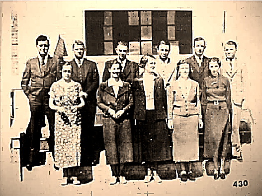 | Ms. Leta Emma Beard Greenbank High School Faculty, 1935-36. Front Row L-R Miss Mary Hiner, Miss Hilda Bird Sider, Miss Laura Hannah, Miss Marguerite Lawson, Miss Leeta Beard