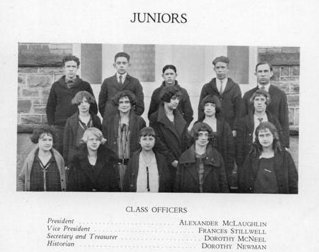 ![]() Lucy Edgar Beard is in the photo above, which one? Juniors in 1925 are Lucy Edgar Beard, Martha Beard, Anna Bell Clark, Alexander McLaughlin, Rachel Irvine, Dorothy McNeel, Carl Morrison, Martha McNeel, Eva Fowler, Lorena Warren, Nelson Landis, Wilbur Moore, Frances Stillwell, Dorothy Newman, Margaret McNulty. |