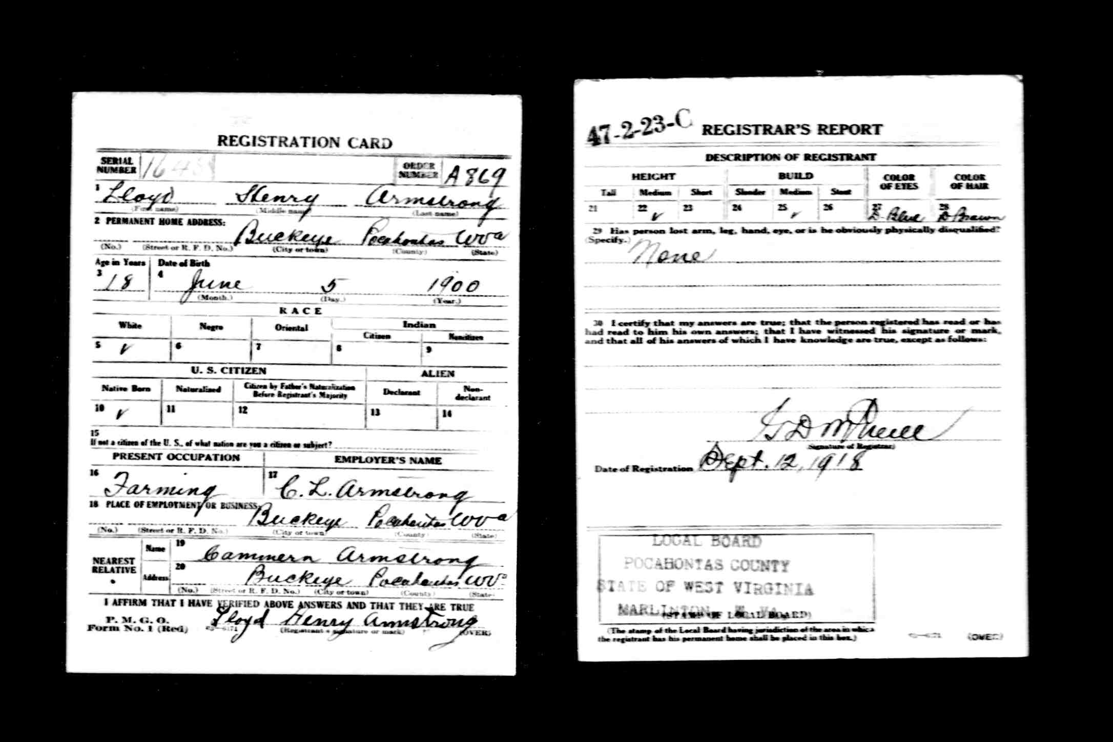 December 20, 1948. The deceased was the son of Cameron Armstrong, of