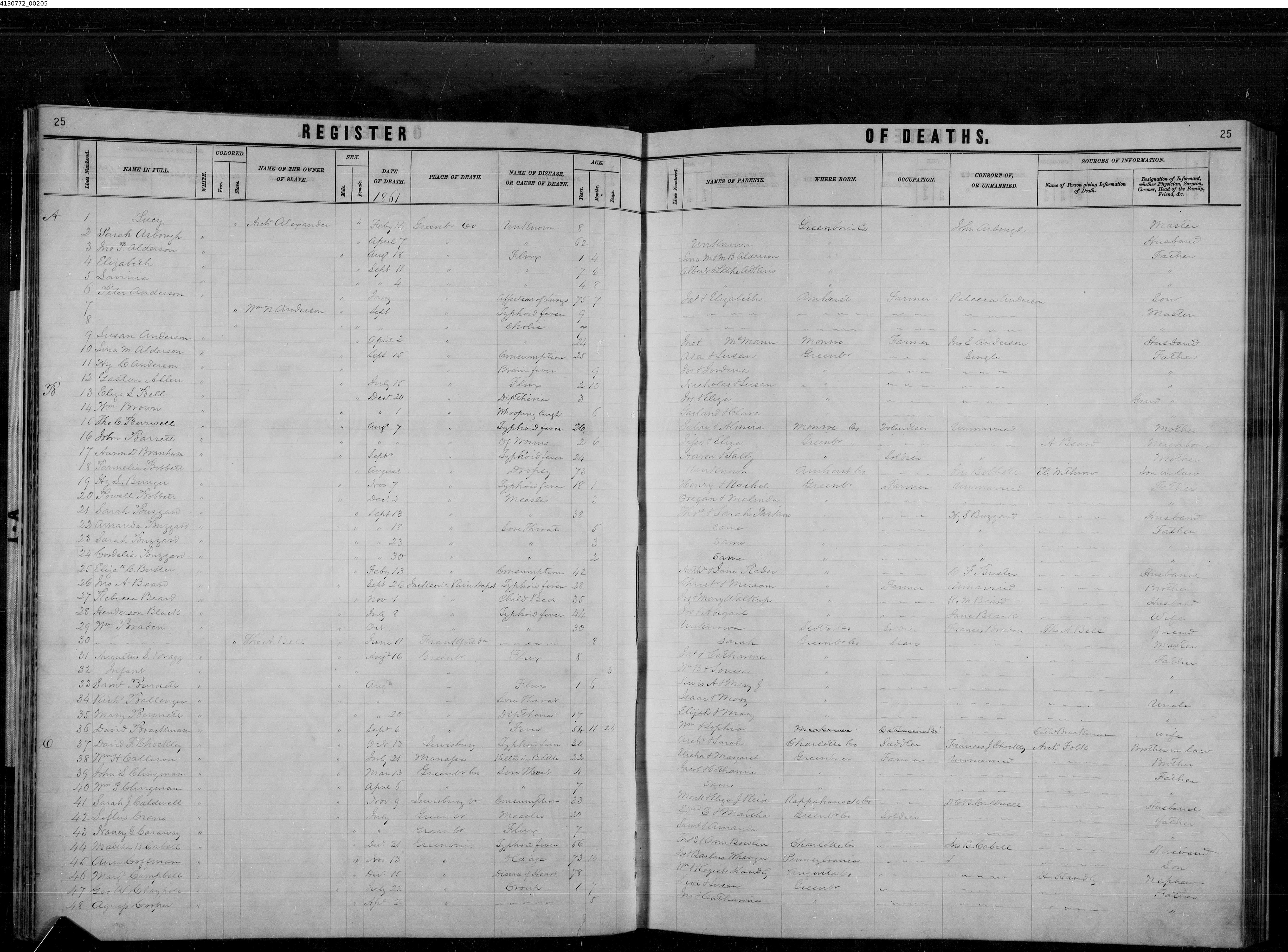 http://www.wvculture.org/vrr/va_view.aspx?Id=2899858&Type=Death Christn Beard, M, Mar 1858, Greenbrier County, WV, Age at Death 6m, Birthplace Greenbrier County, WV; Mother Rebecca, Father Ro. d Spasms |