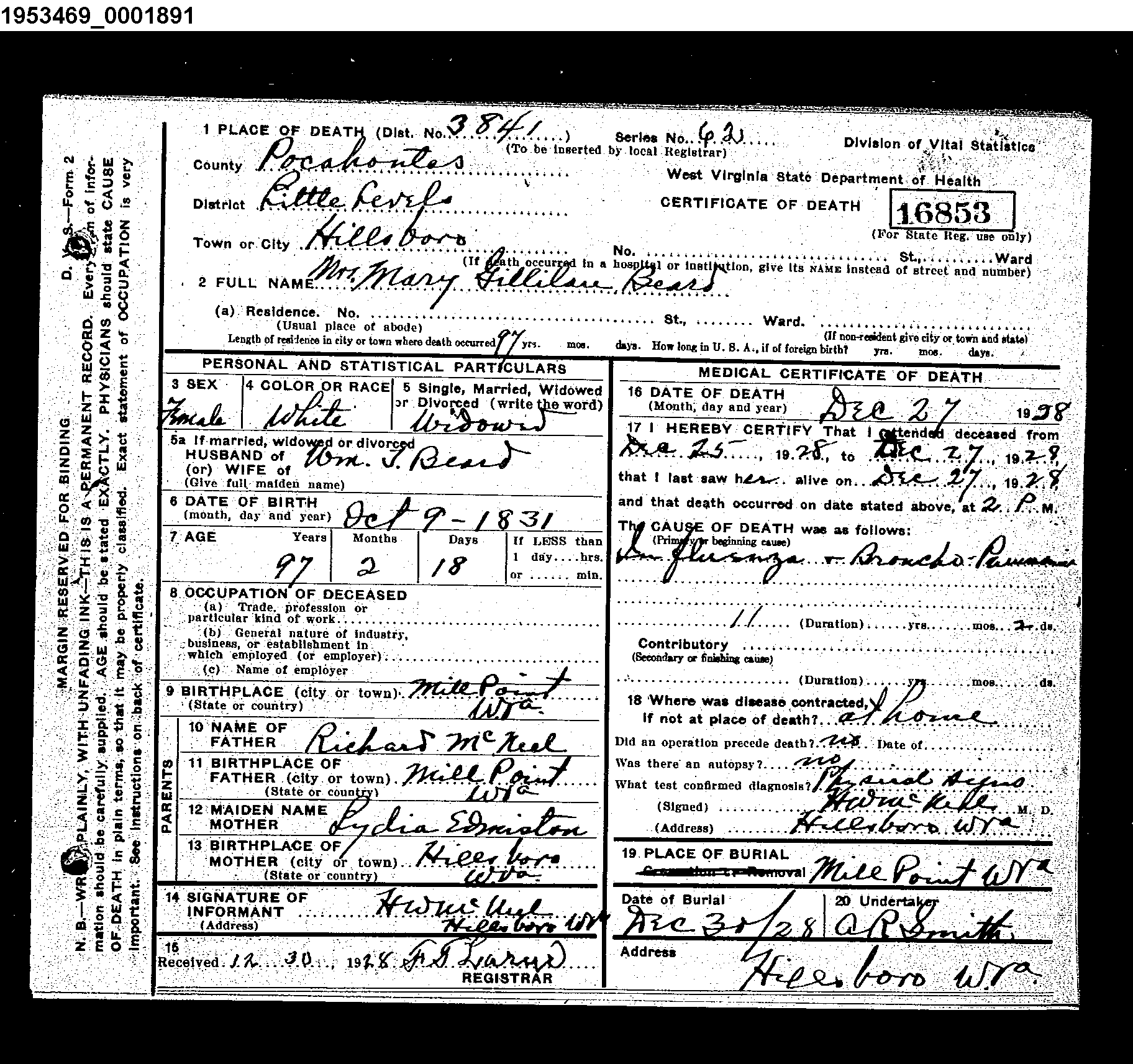 | Death Record : Mary Gillian McNeel Beard |