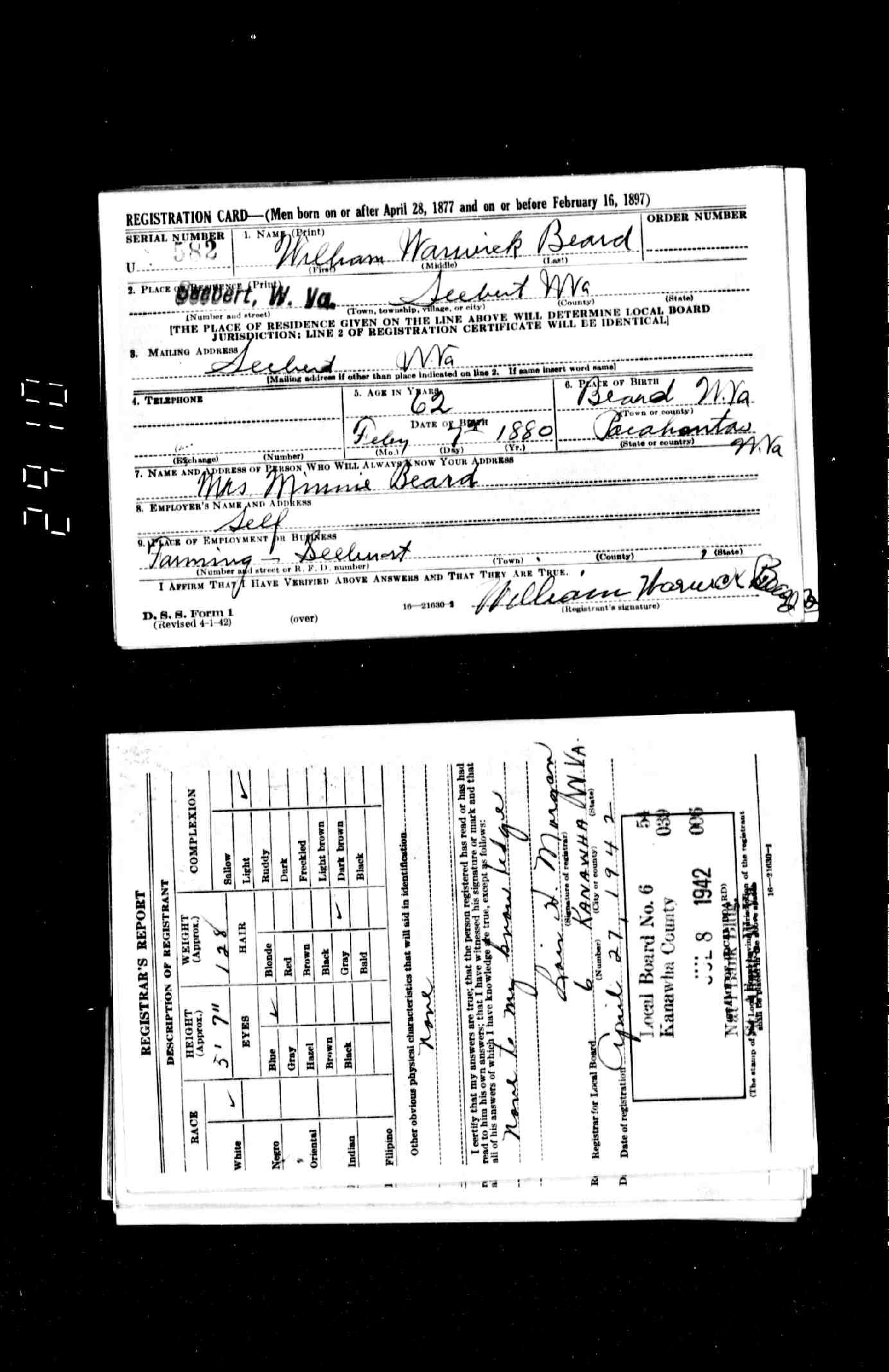 | William Warwick Beard - WWII Draft Record |