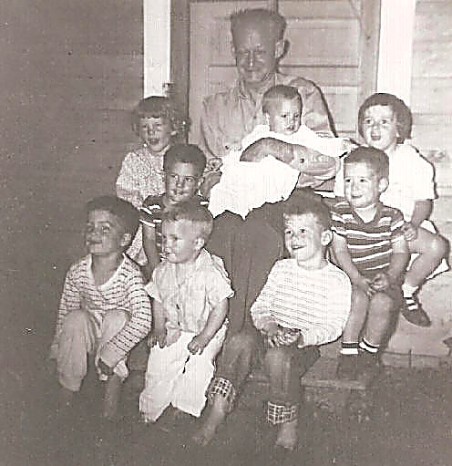 Grandpa Lynn Beard with his grandchildren, holding Alan Lindley Beard. |